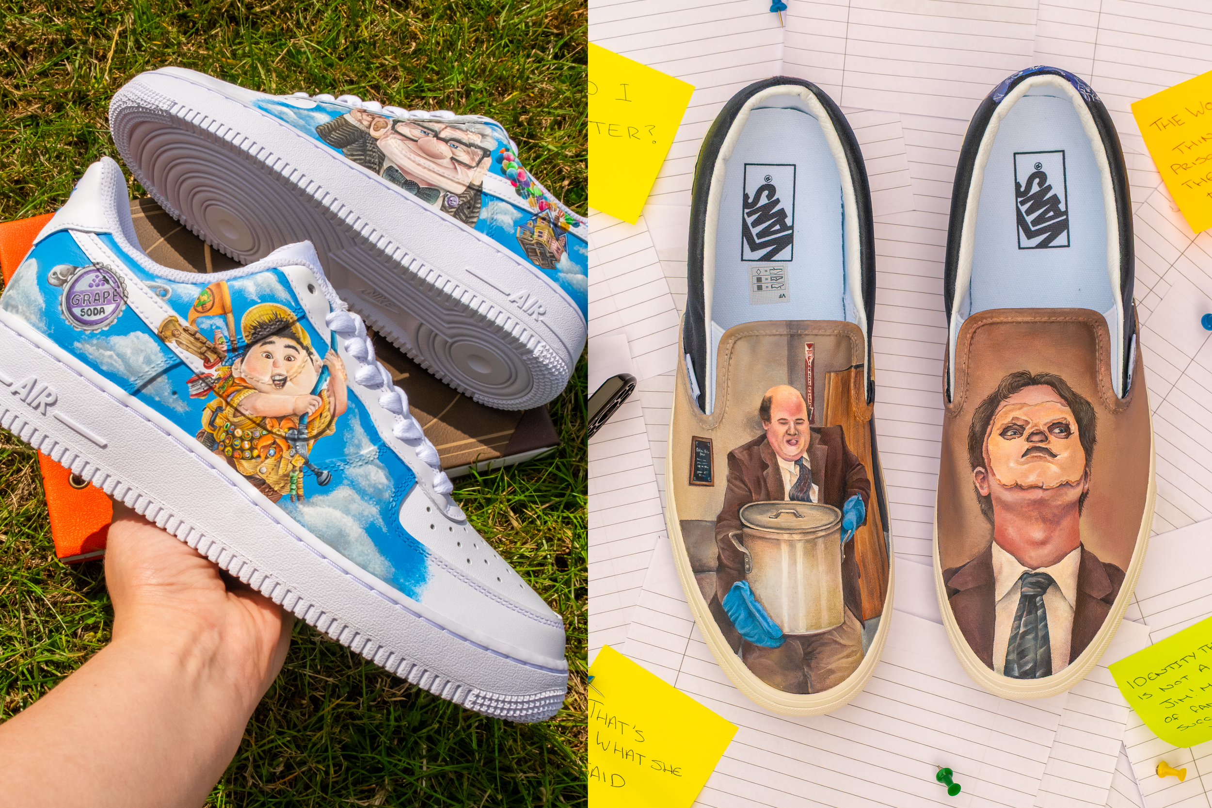 Pricing varies depending on design, to reflect the detail and time spent on each piece. All final prices include the artwork and the item to be customised (for example, the price for a custom pair of shoes would include the shoes and artwork). However, if you’d like to provide an item for customisation, please let us know for an accurate price for artwork only.