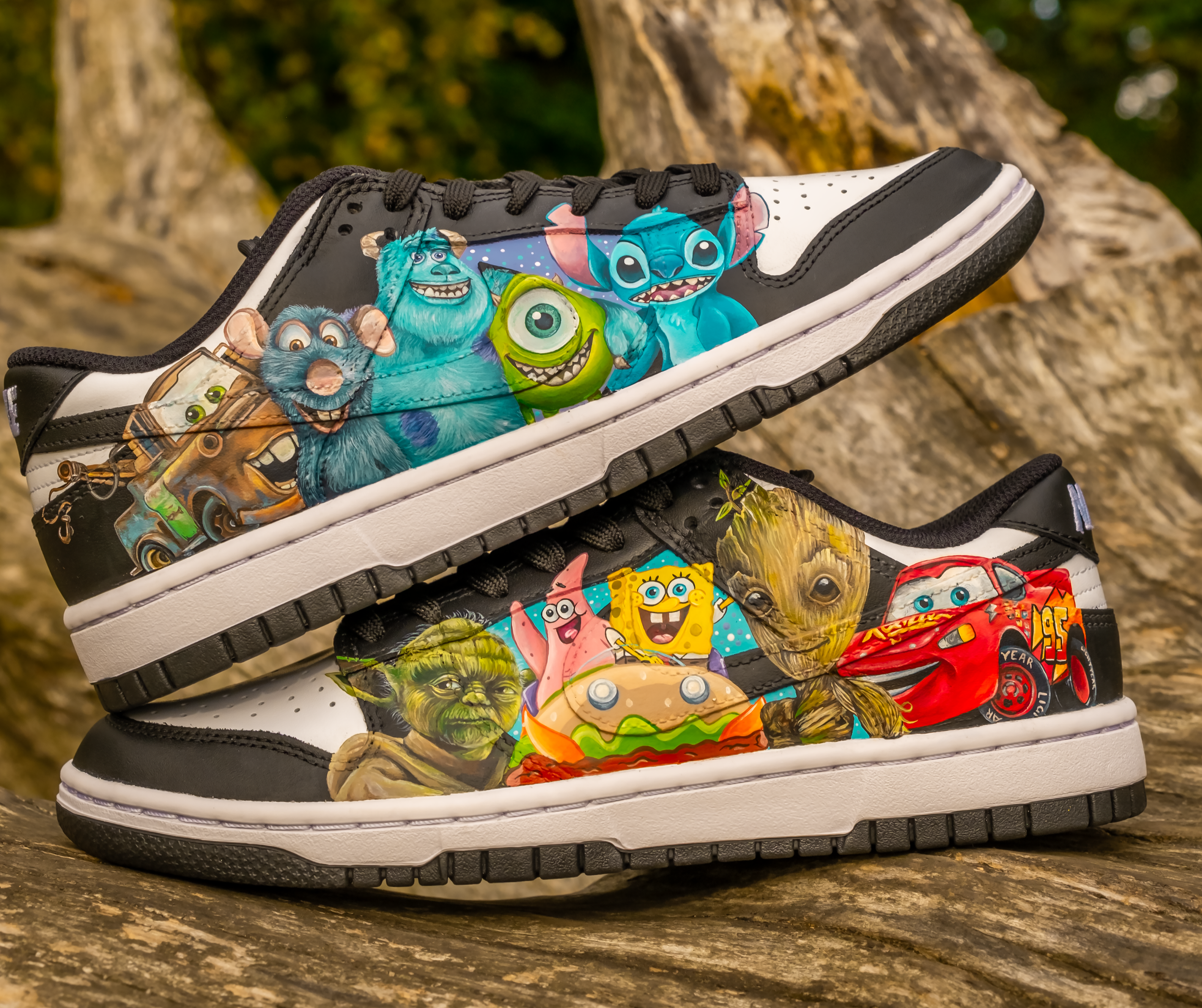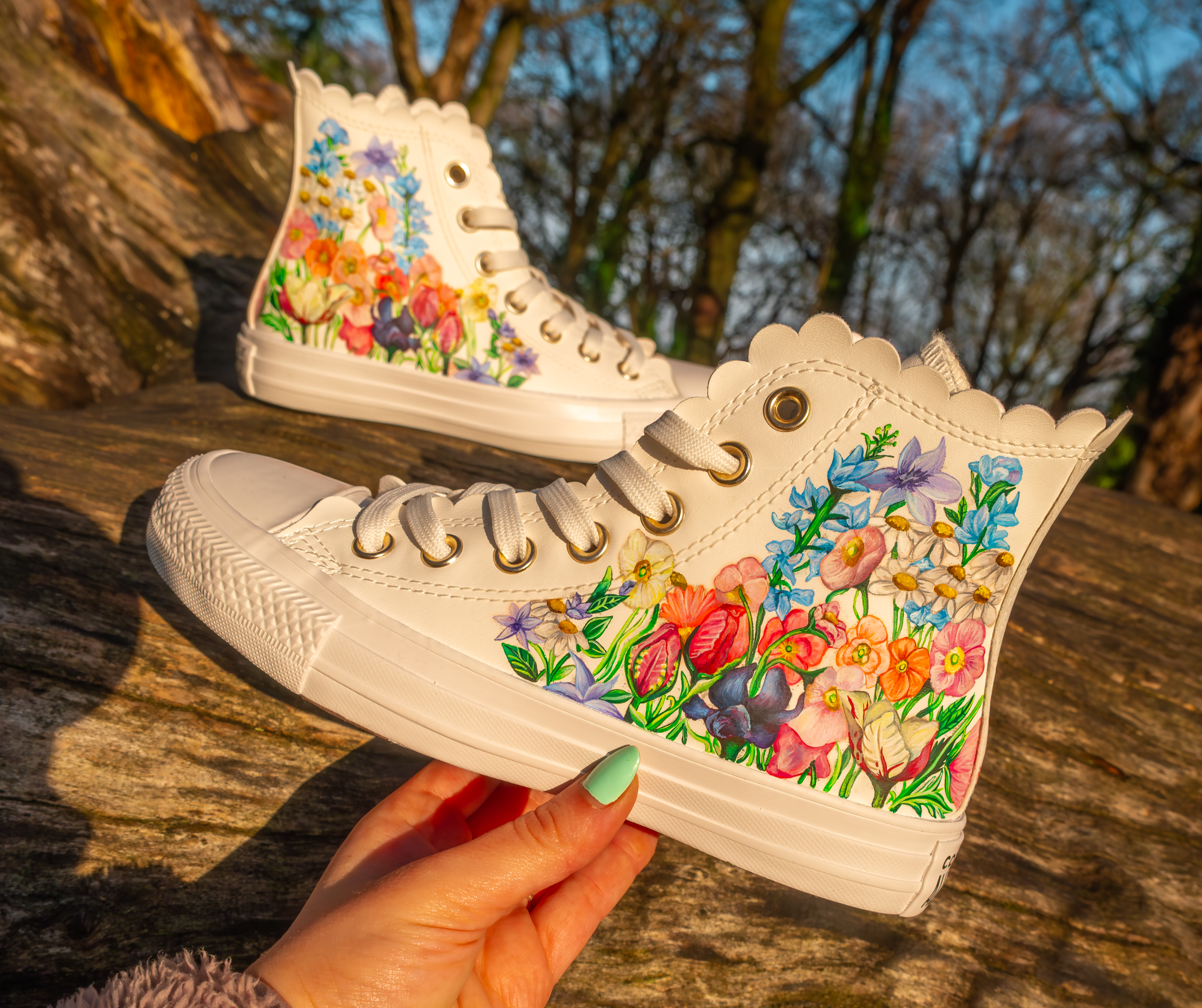 Pricing varies depending on design, to reflect the detail and time spent on each piece. All final prices include the artwork and the item to be customised (for example, the price for a custom pair of shoes would include the shoes and artwork). However, if you’d like to provide an item for customisation, please let us know for an accurate price for artwork only.